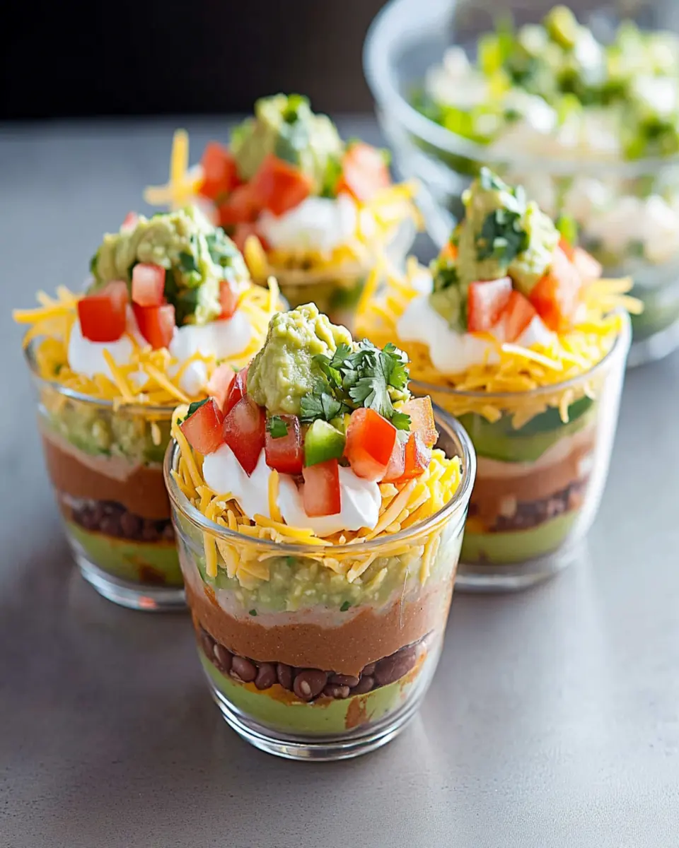 7 layer dip cups are incredibly versatile, allowing you to mix and match ingredients to suit your taste or dietary preferences. Whether you want a spicier kick or a healthier twist, the variations are endless!