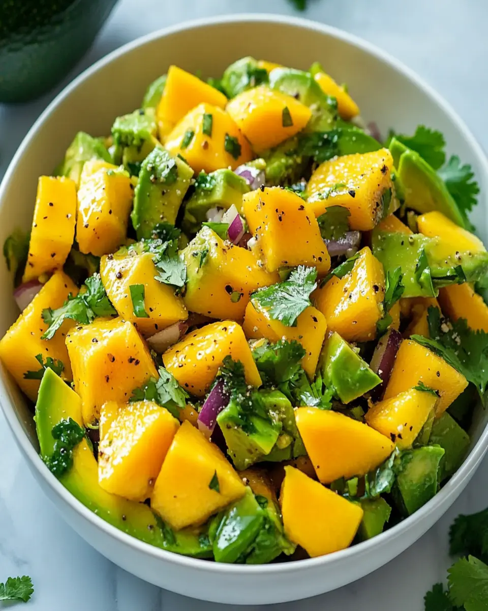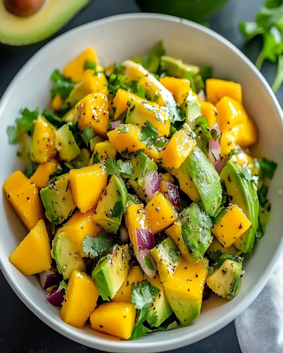 A refreshing and vibrant avocado mango salad tossed in a zesty lime dressing, perfect for any occasion.