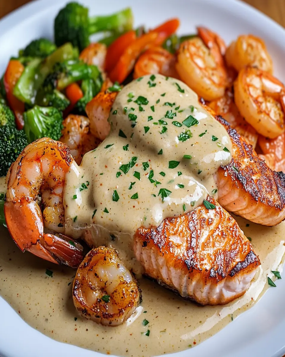 Cajun Shrimp and Salmon with Garlic Cream Sauce is a flavorful dish that combines shrimp and salmon in a rich, spicy garlic cream sauce. It’s perfect for seafood lovers and is easy to prepare, making it an excellent option for busy weeknight dinners.