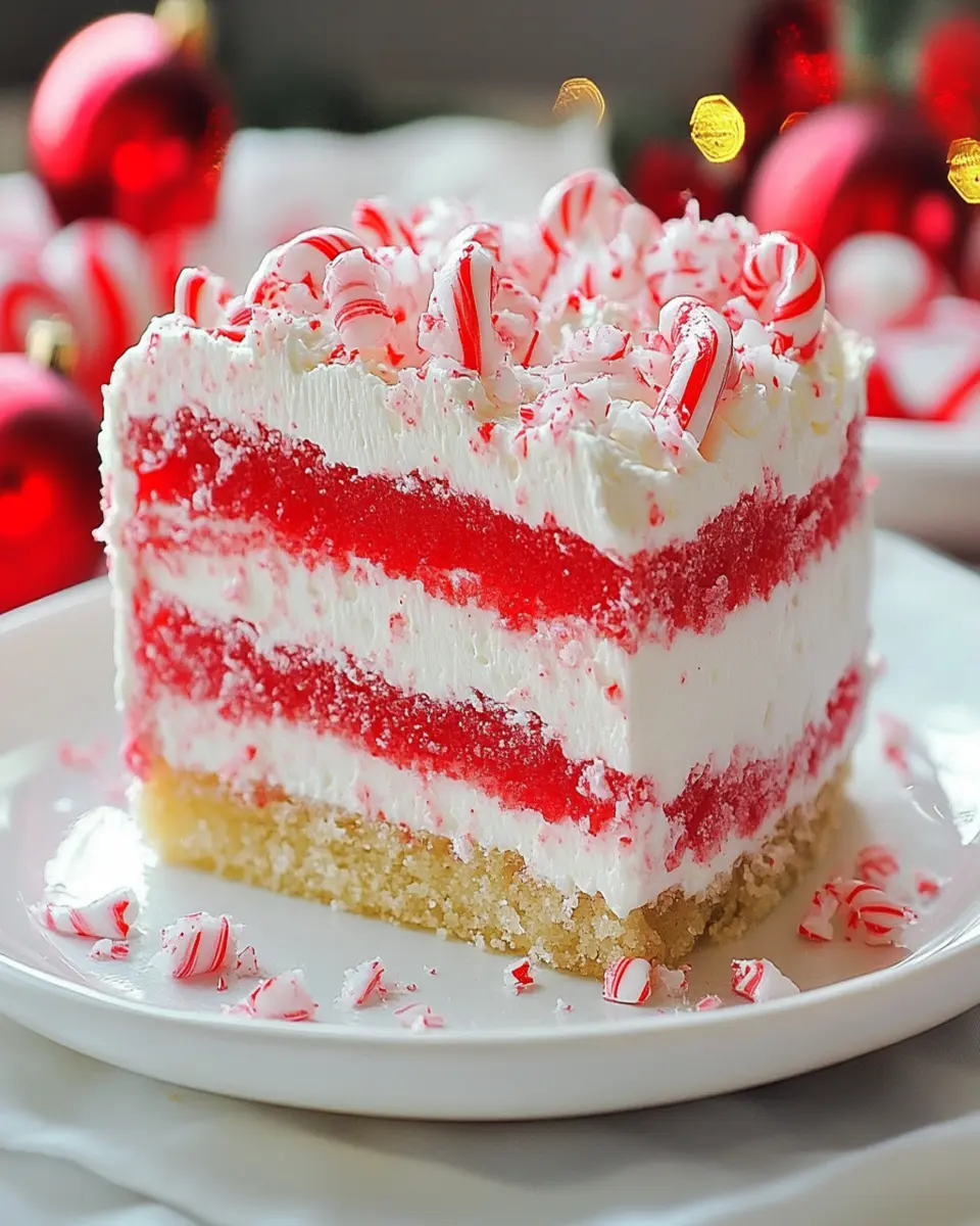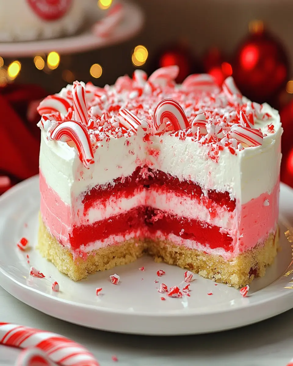 A festive and delicious Candy Cane Lush Cake perfect for holiday gatherings!