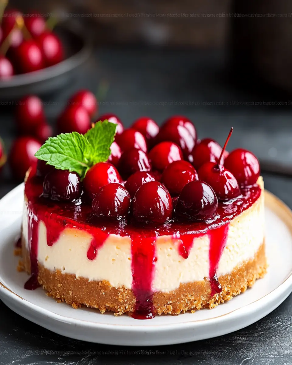 In conclusion, this cherry cheesecake recipe is a perfect blend of creamy richness and sweet tartness, making it an irresistible dessert for any occasion. Whether you’re a seasoned baker or a novice, this recipe is straightforward and rewarding. The combination of flavors and textures ensures that each bite is delightful.