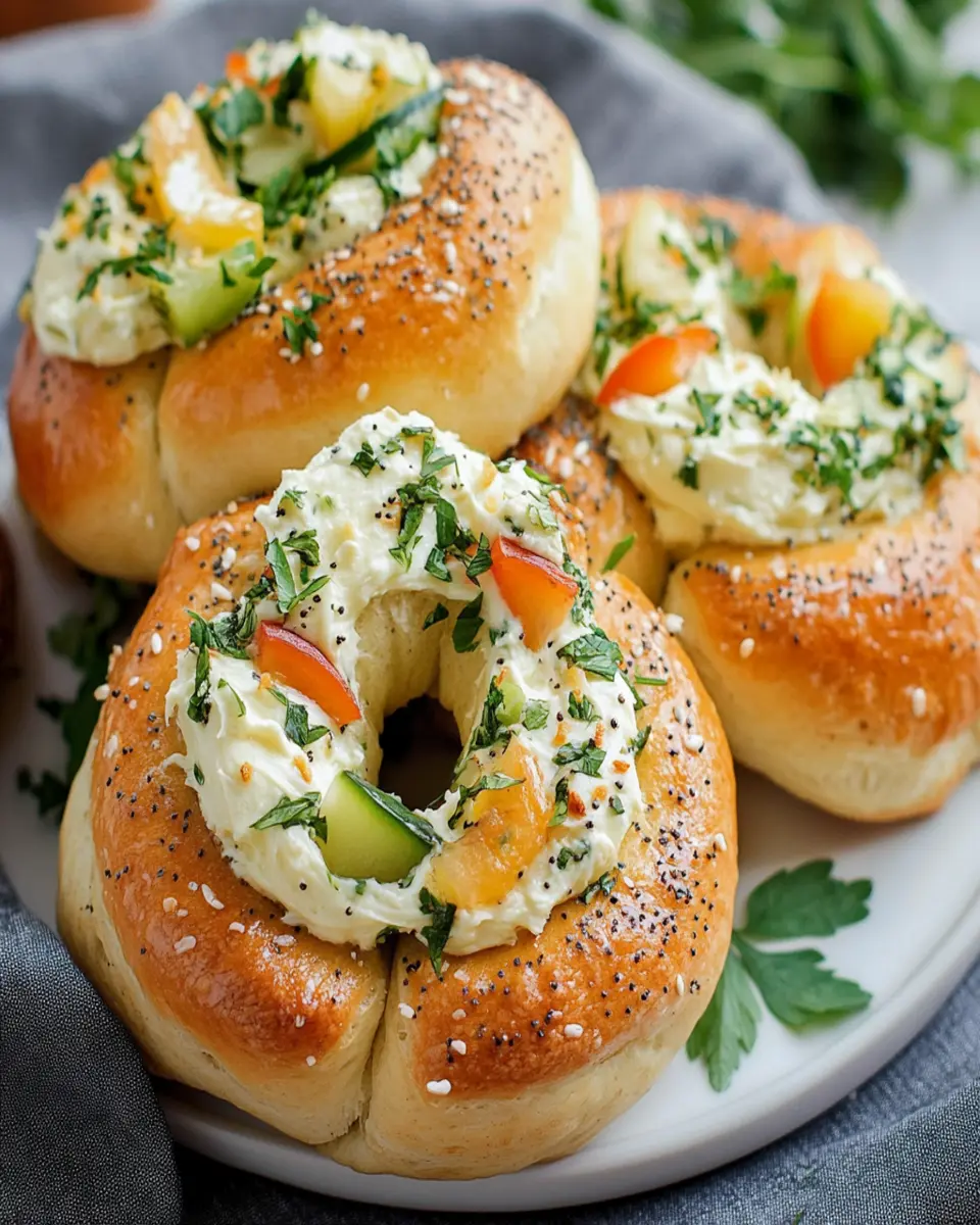 Imagine the aroma of freshly baked bagels wafting through your kitchen as you prepare this delightful dish. The combination of smooth cream cheese, fresh herbs, and a hint of garlic creates a mouthwatering filling that elevates the humble bagel to new heights. Plus, with just a handful of ingredients and a quick baking time, you can whip up these scrumptious bagels in no time, making them a perfect choice for time-pressed individuals.