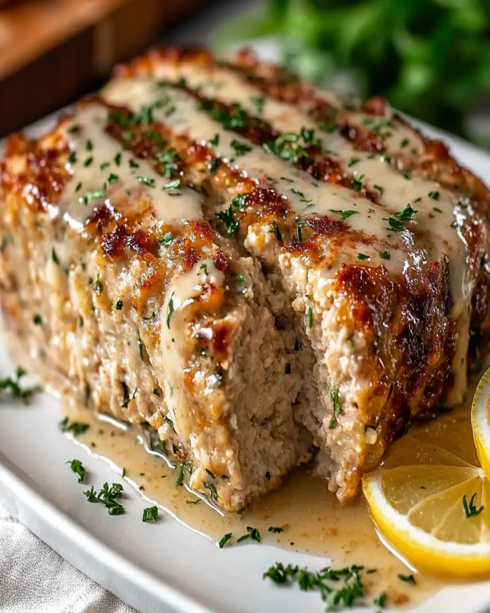 This Delightful Garlic Parmesan Chicken Meatloaf is a savory and moist dish, bursting with flavor from garlic, cheese, and herbs.