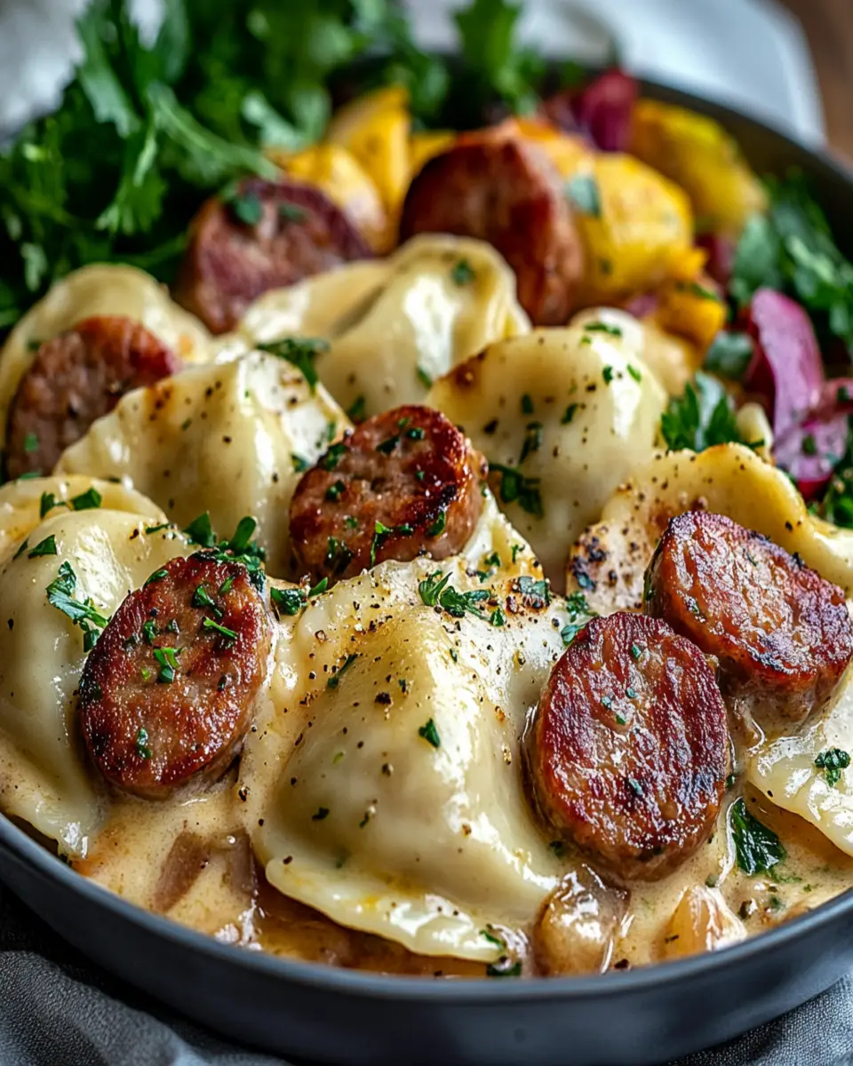 Easy Creamy Pierogi with Turkey Sausage