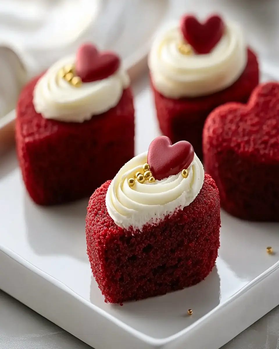 Heart-Shaped Red Velvet Mini Cakes: Irresistibly Sweet Delights