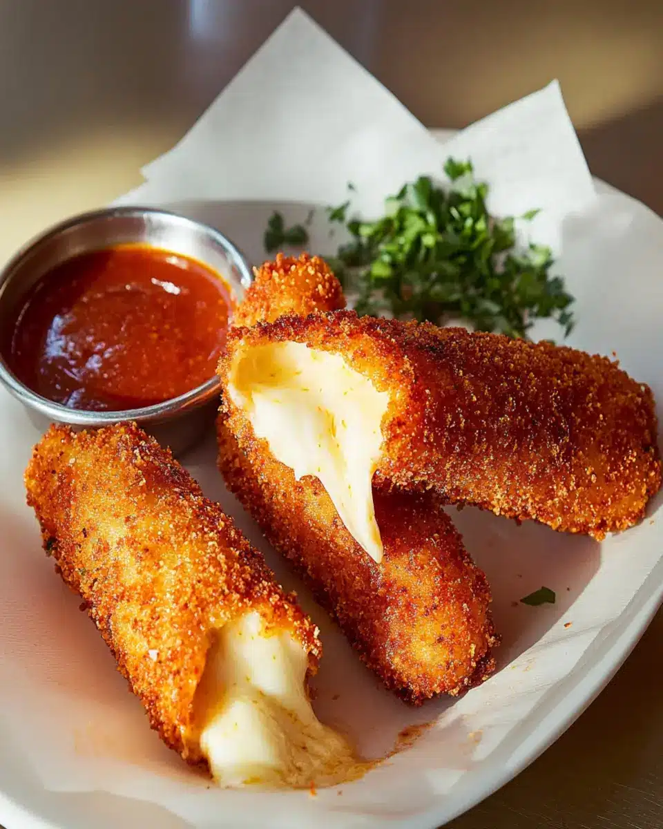 To make these mozzarella sticks gluten-free, substitute regular breadcrumbs with gluten-free breadcrumbs and use a gluten-free flour blend. This way, you can enjoy the same crispy texture and spicy flavor without worrying about gluten. It’s an excellent option for those with dietary restrictions.