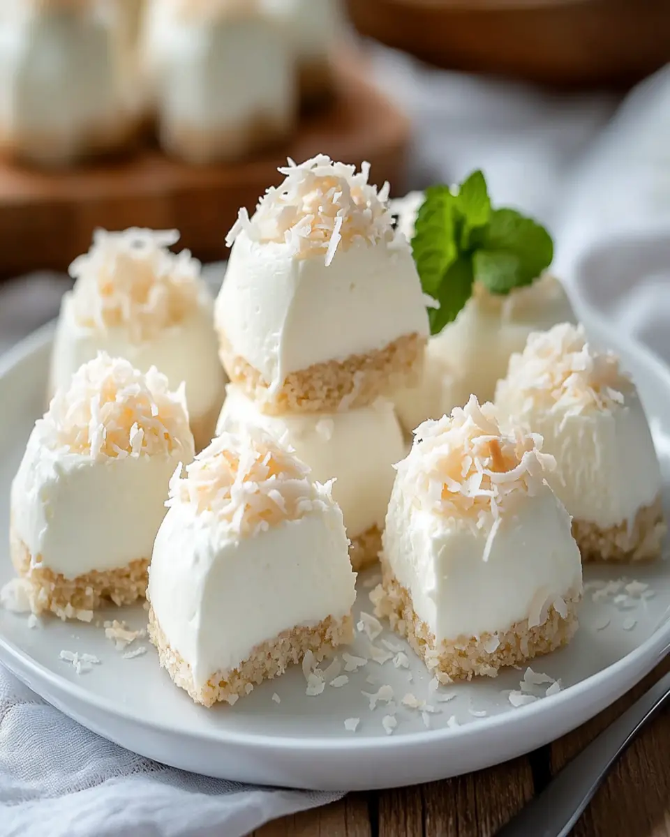In just 40-50 words, these No-bake Coconut Cheesecake Bites promise a quick, easy, and delicious way to satisfy your sweet cravings without the fuss of baking. Why not whip up a batch today and indulge in this coconut delight?