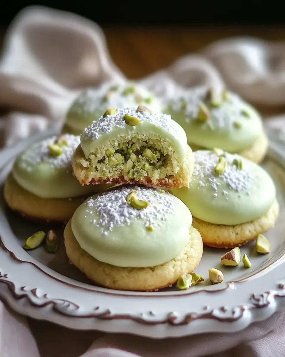 These cookies can be dressed up for special occasions. Consider dusting them with edible glitter or serving them in decorative boxes tied with ribbons as wedding favors. The vibrant green of the pistachios paired with a festive presentation makes them a charming addition to any celebration.