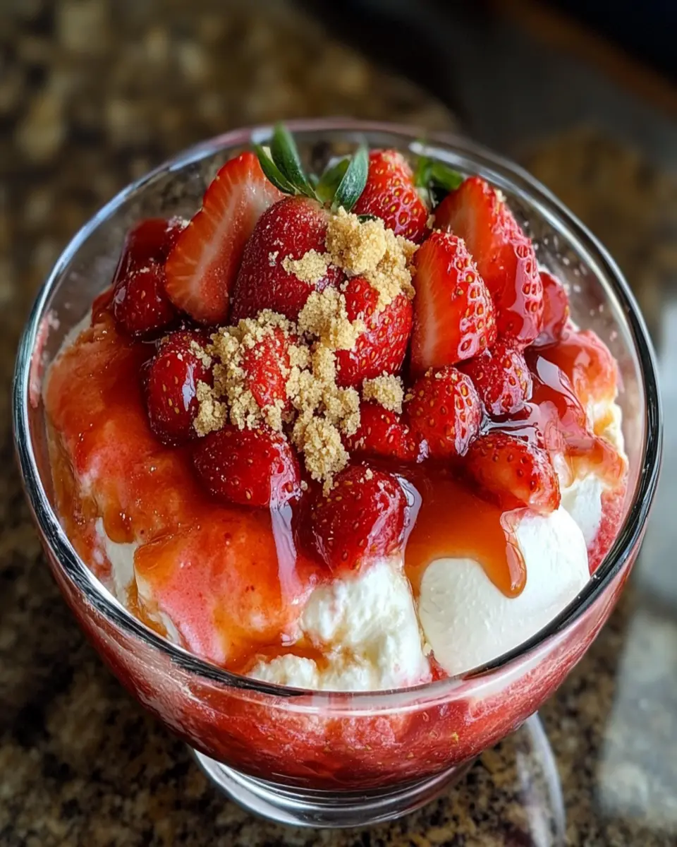 In addition, it offers 25g of carbohydrates, primarily from the fresh strawberries and sugar, along with 4g of protein. The presence of 1g of fiber helps make this dessert a little more filling. Enjoying this bowl means savoring a delightful blend of flavors while still keeping an eye on your nutritional intake!