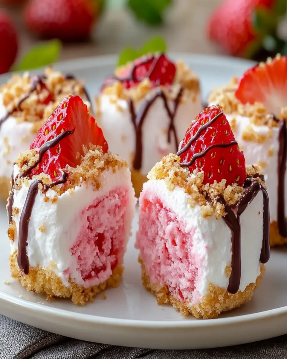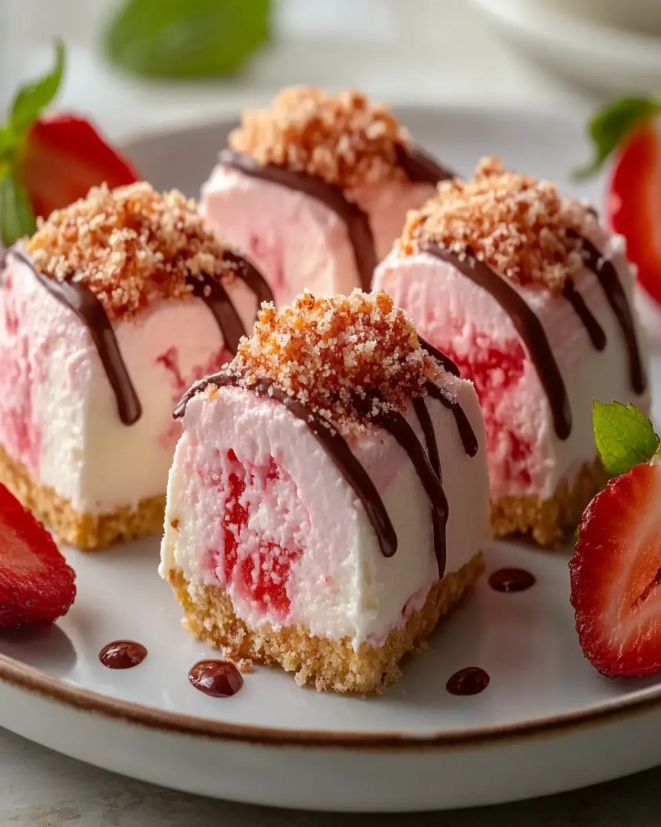 Delicious bite-sized treats that combine the flavors of strawberry and cheesecake with a crunchy topping.