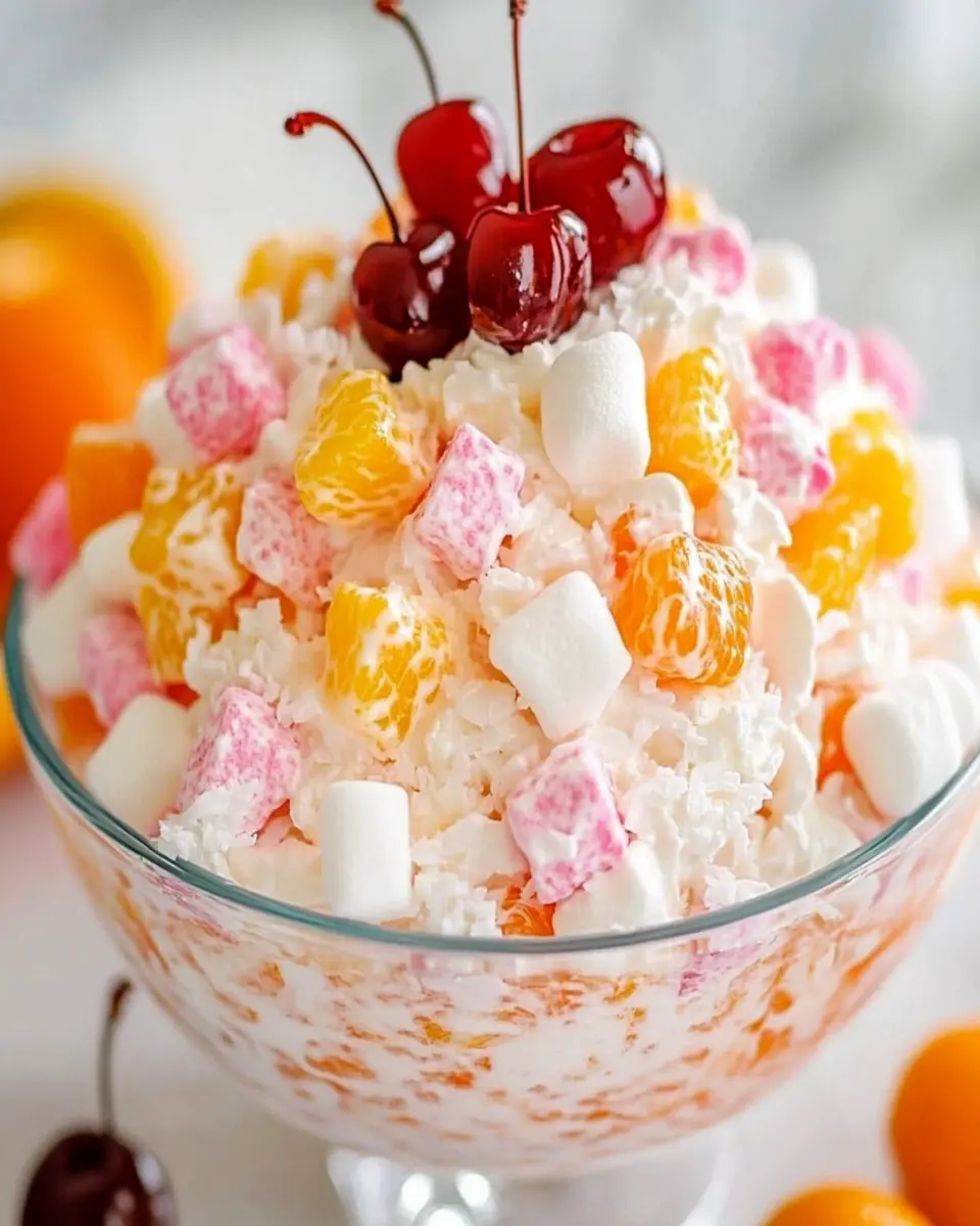 These soft, fluffy delights add a sweet and chewy texture to the Ambrosia Salad, making each bite a treat. Their lightness helps balance the richer ingredients, creating a perfect harmony of flavors.
